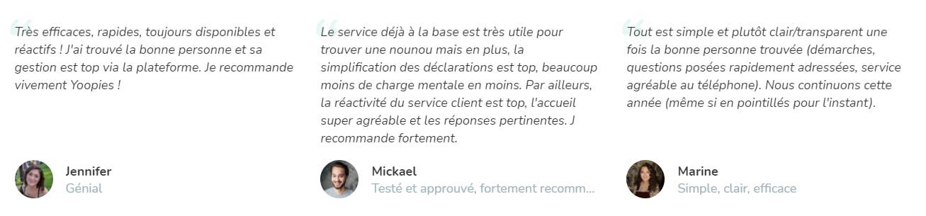S’entretenir de façon professionnelle avec votre futur(e) nounou est primordial pour trouver la perle ! Vous aurez besoin d’être sûr(e) de pouvoir faire confiance à votre nounou d’enfer, et de la connexion qu’il/elle aura avec votre enfant. Sur Yoopies, vous avez la possibilité de prendre des rendez-vous en ligne pour des entretiens !