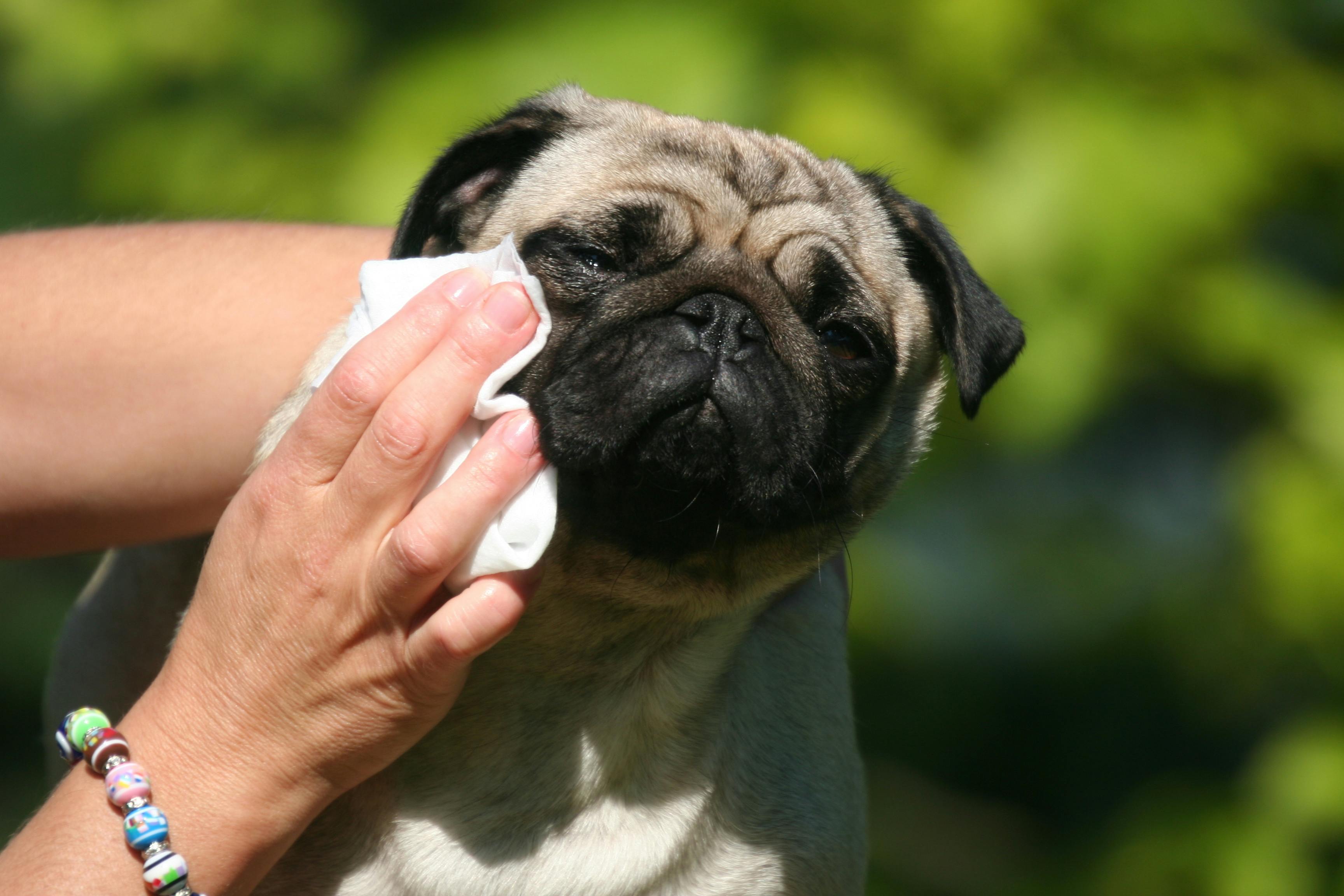 Les oreilles des chiens sont fragiles, il est bon d’employer des produits formulés spécifiquement pour cette zone et non de l’eau. Ses yeux peuvent être nettoyés avec une compresse stérile et du sérum physiologique ou encore une compresse imbibée d’eau bouillie.